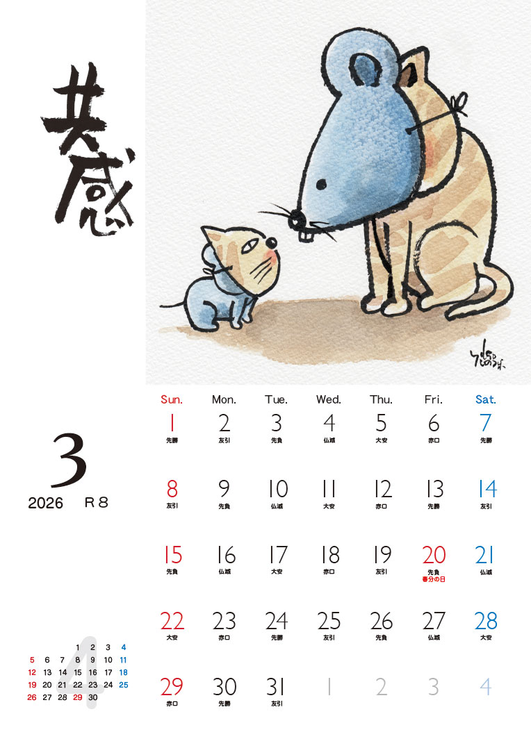 漫画家・篠原ユキオ先生の月めくりカレンダー。